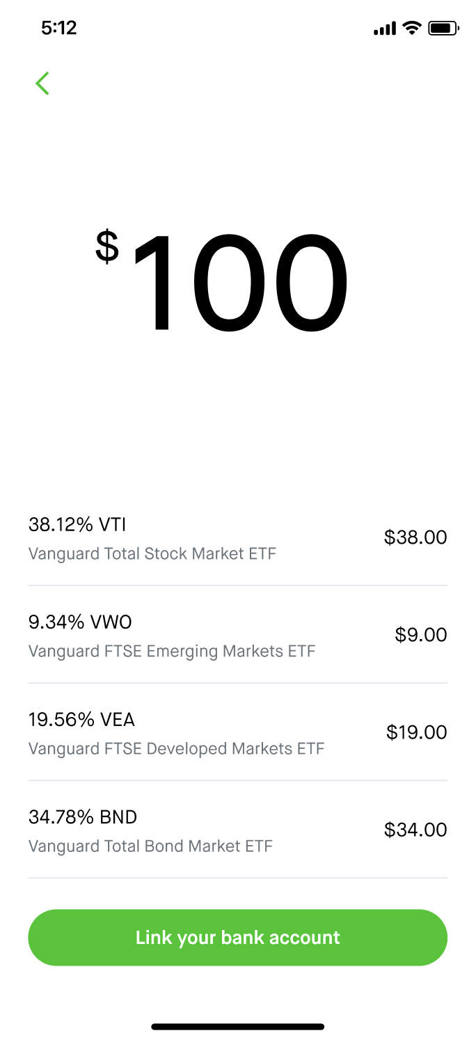 Once the customer decides that they’re ready to invest in their portfolio, we make it easy to link their bank, transfer funds, and invest in 1 flow.