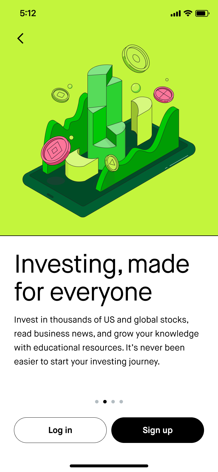 Content goal: Invite the customer in and give them a high-level overview of what Robinhood has to offer without getting too specific.