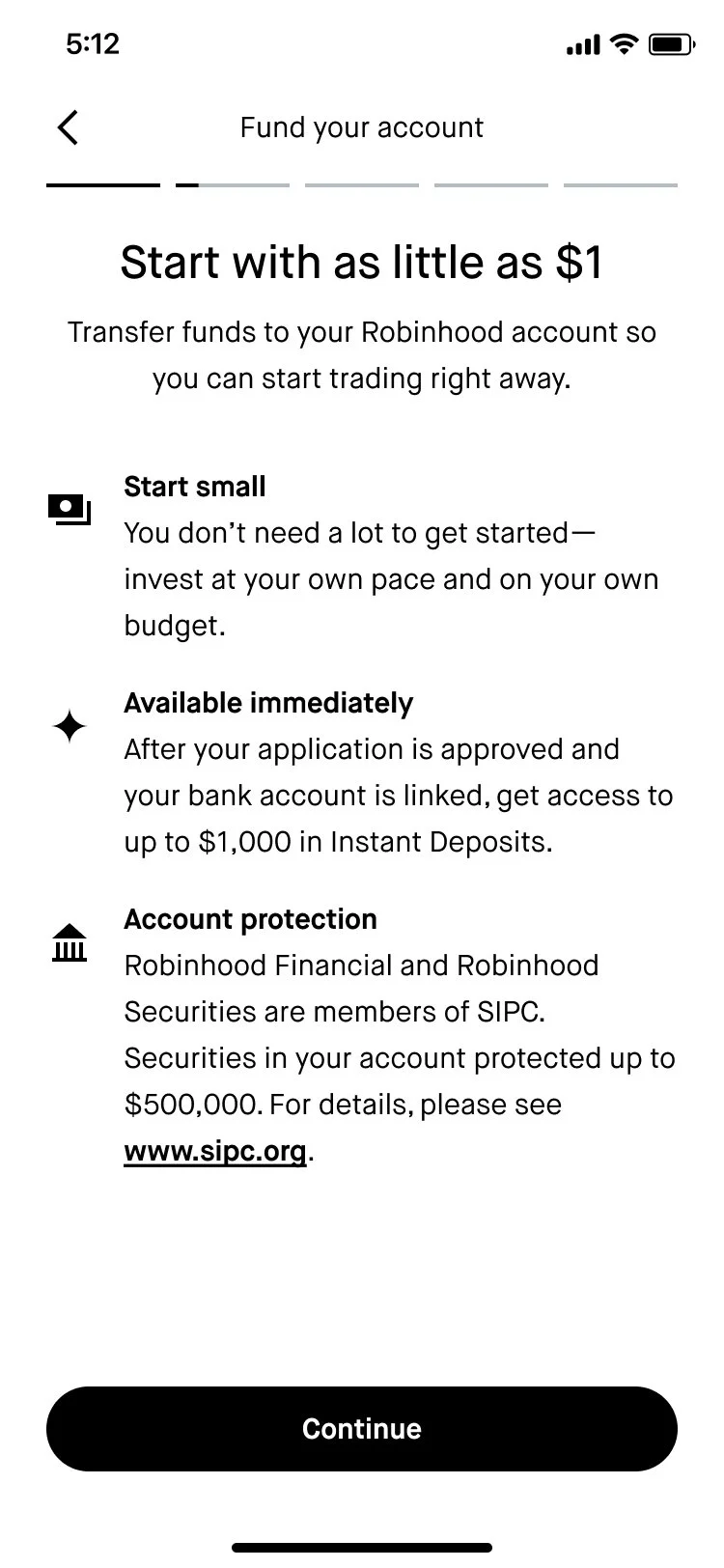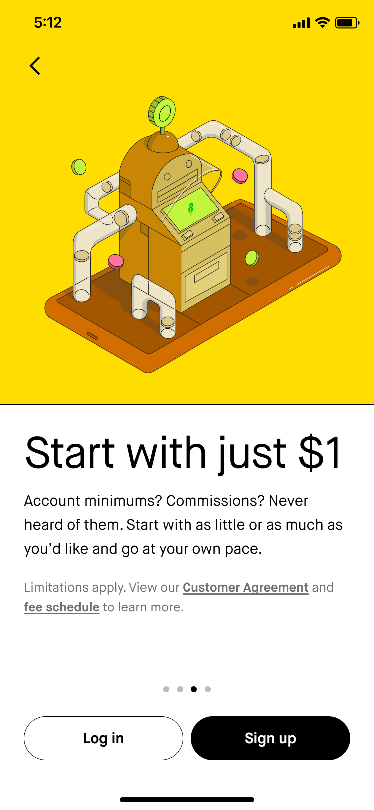 Content goal: A lot of customers come into Robinhood with a trial mentality, so I wanted to emphasize that it doesn’t take much to get started to help them take that first step.