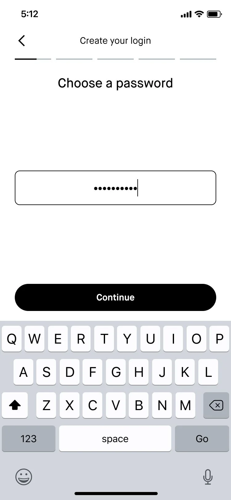 Implementation: Using “Choose” as the verb here helps the customer know that we’re asking them to come up with something new. Ideally we would’ve used the subheader space to provide guidance on any requirements (i.e. how many special characters they need), but we actually don’t have any. 😅 I believe that’s in the works though, so I left the subheader blank here to reduce friction for now.