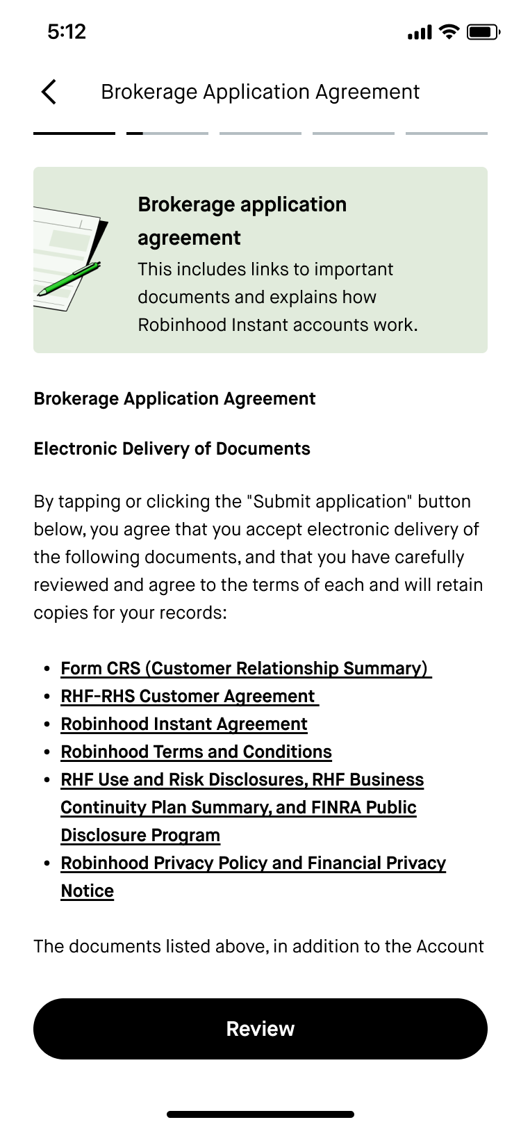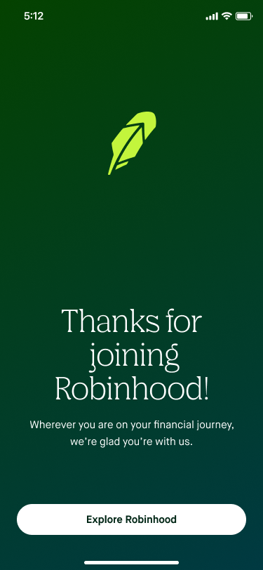Content goal: Signal to the customer that they’ve completed Robinhood and express appreciation for choosing us.